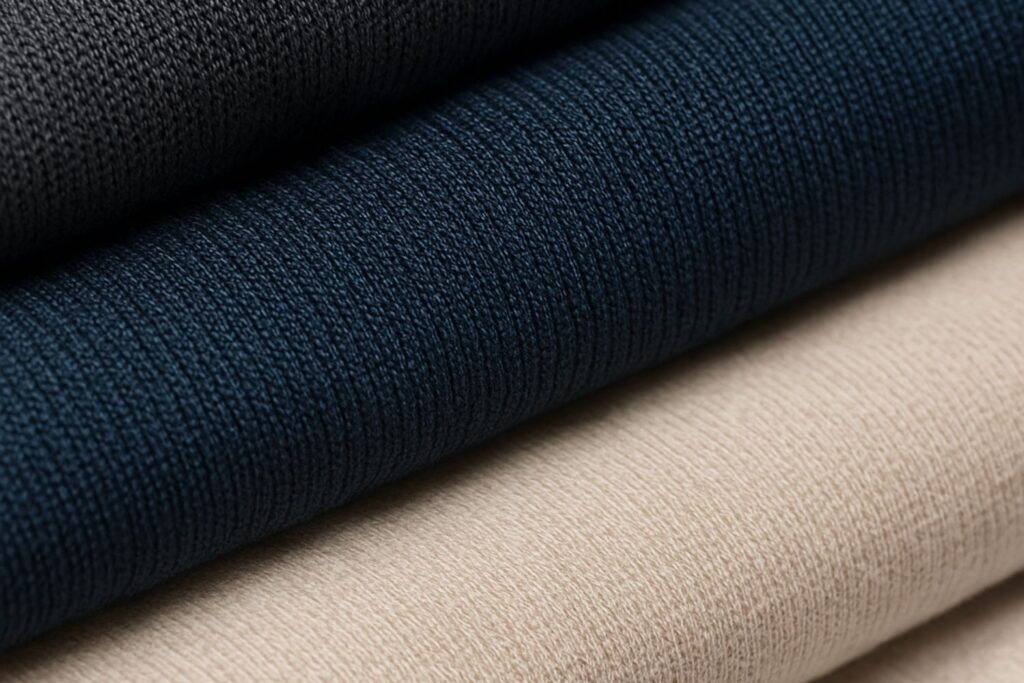 For performance-focused collections, we recommend moisture-wicking polyester blends or nylon-spandex knits. For casual wear, lightweight cotton-modal or bamboo blends offer excellent comfort and breathability.